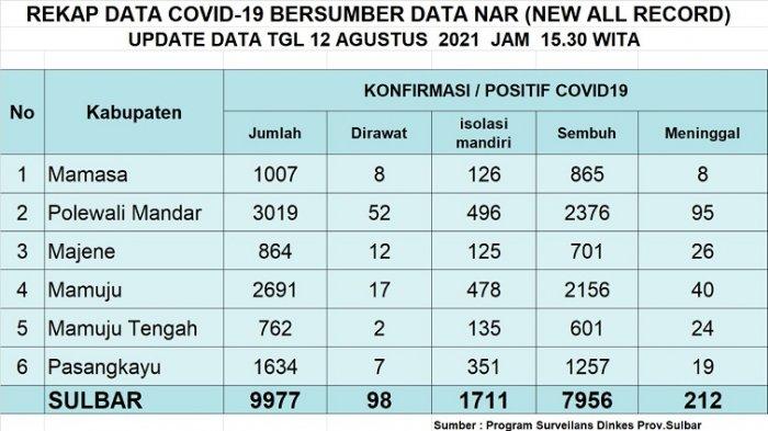 TRIBUN-SULBAR.COM, MAMUJU - Positif Covid-19 di Sulawesi Barat (Sulbar) kembali bertambah 221 kasus, Kamis (12/8/2021).