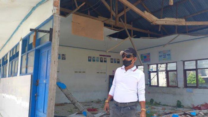 TRIBUN-SULBAR.COM, MAMUJU - Gedung sekolah SDN 4 Mamuju ambruk pascagempa 15 Januari 2021 lalu.