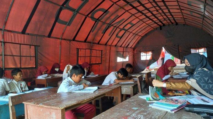 TRIBUN-SULBAR.COM, MAMUJU- Pembelajaran Tatap Muka (PTM) Terbatas di SD Inpres Salupangi berlangsung di tenda darurat BNPB.