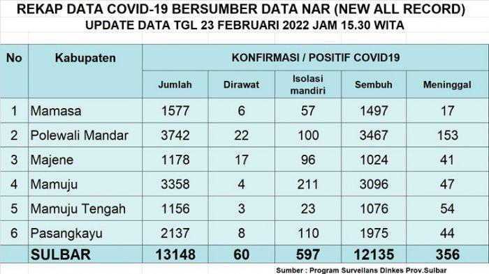 Berikut update data Covid-19 Sulbar per Kabupaten, Rabu (23/2/2022).