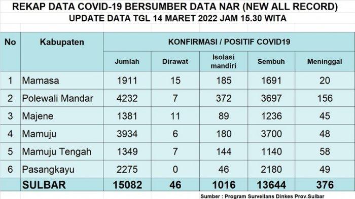 Berikut update data Covid-19 Sulbar per Kabupaten, Senin (14/3/2022).