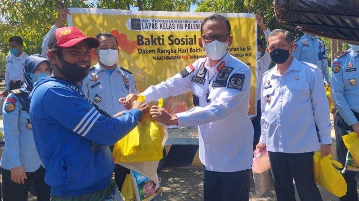 TRIBUN-SULBAR.COM - Kepala Kantor Wilayah Kementerian Hukum dan HAM Sulawesi Barat, Faisol Ali bersama Kepala Divisi Pemasyarakatan, Robianto mengikuti Bakti Sosial (Baksos) yang diselenggarakan jajaran Lemabaga Pemasyarakatan Kelas IIB Polewali, Jumat (22/4/2022).