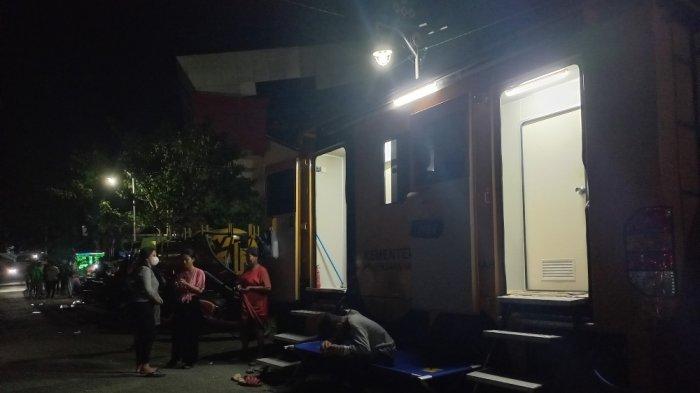 TRIBUN-SULBAR.COM, MAMUJU - Satu unit toilet umum mulai difungsikan pengungsi di kawasan Stadion Manakarra, Jl Baharuddin Lopa, Kelurahan Binanga, Kecamatan Mamuju, Mamuju, Sulawesi Barat (Sulbar), Rabu (8/6/2022) malam.