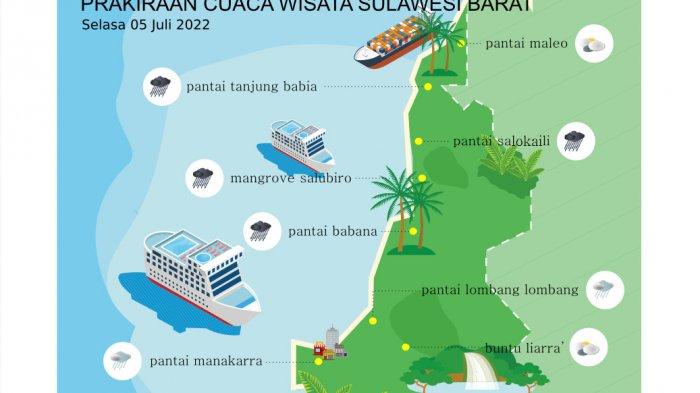 TRIBUN-SULBAR.COM - Berikut ini prakiraan cuaca di wilayah Sulawesi Barat untuk Selasaa (5/7/2022) besok.