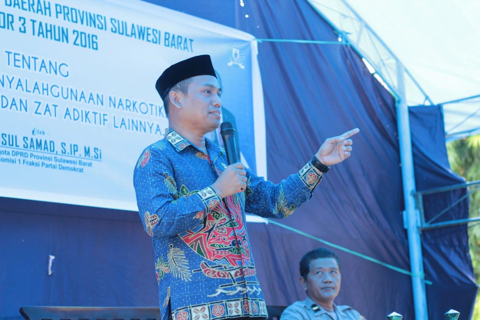 TRIBUN-SULBAR.COM, MAMUJU - Ketua Komisi I DPRD Sulbar, Syamsul Samad menggandeng Badan Narkotika Nasional Kabupaten (BNNK) Polman, untuk mensosialisasikan peraturan daerah tentang bahaya narkoba, di Kecamatan Tinambung, Polman, Sulbar, Kamis (25/8/2022).