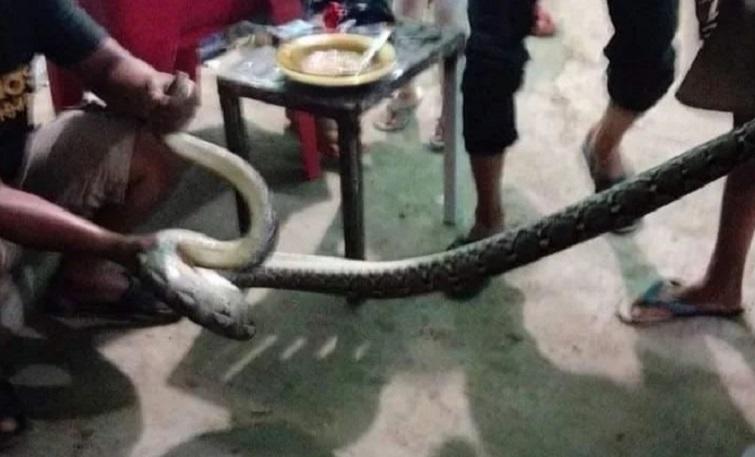 Warga Mamuju Kembali Tangkap Ular Piton Panjang 3 Meter di BTN Masagena