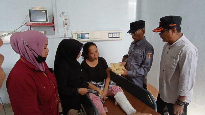 Pj Bupati Polman, Ilham Borahima telah mengunjungi korban kebakaran di rumah sakit, didampingi kepala Dinas Sosial, Aswar Jasin.