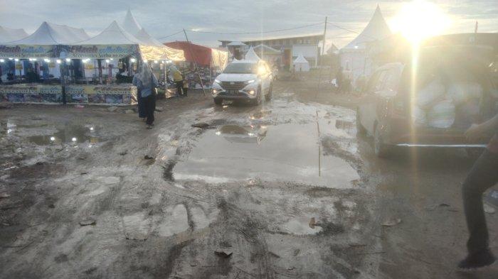 Namun dalam menyambut kemeriahan tersebut, sejumlah UMKM berjualan mengeluhkan kondisi jalan rusak parah dan becek bak kubangan kerbau pasca di guyur hujan.