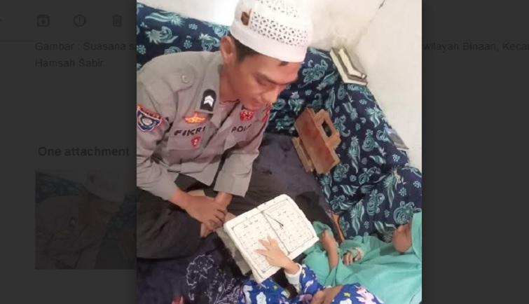 Menariknya, selain bertugas sebagai Bhabinkamtibmas, ia juga menyempatkan untuk ngajar anak - anak tahsin Quran.