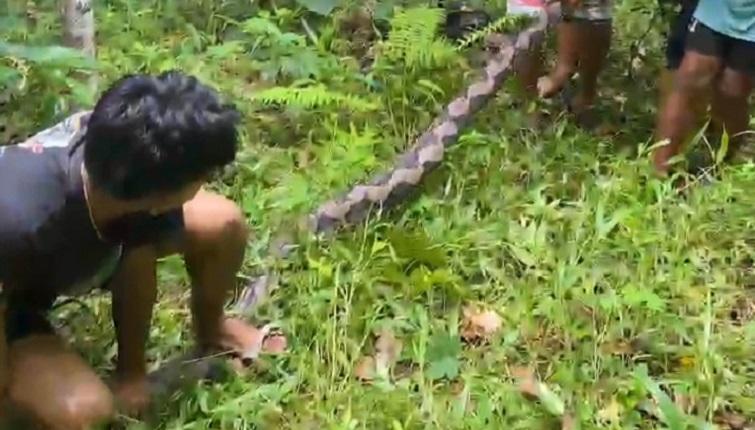 Dalam video beredar ada sekitar sepuluh warga menangkap ular piton yang sempat memberikan perlawanan.
