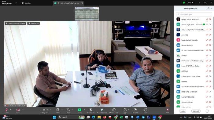 TRIBUN-SULBAR.COM, MAMUJU – Badan Pengelola Keuangan dan Pendapatan Daerah (BPKPD) Provinsi Sulawesi Barat menggelar rapat koordinasi pembahasan Dana Bagi Hasil (DBH) Pajak Daerah Triwulan II Tahun Anggaran 2025 secara virtual melalui aplikasi Zoom Meeting, Sabtu (5/7/2025).