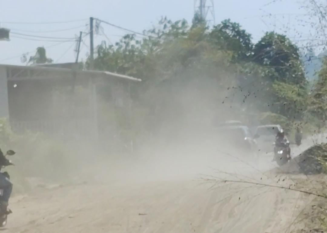 Sementara di musim kemarau, jalanan menghasilkan debu beterbangan dimana-mana hingga menyesakkan dada pengendara maupun warga sekitar.