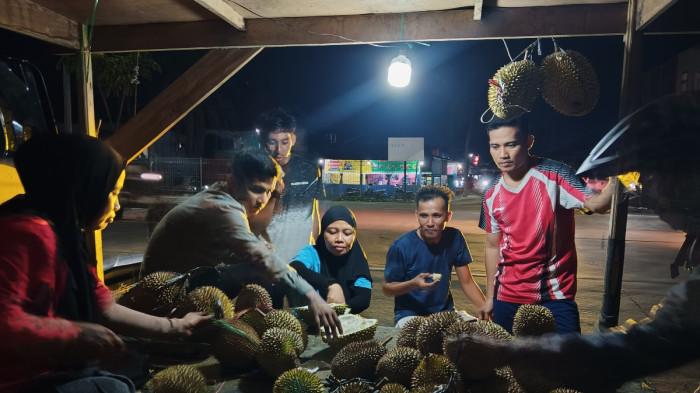 Setiap musim durian tiba, sepanjang jalan utama hingga ke perbatasan kecamatan ramai dipenuhi mobil pikap dan lapak-lapak sederhana.