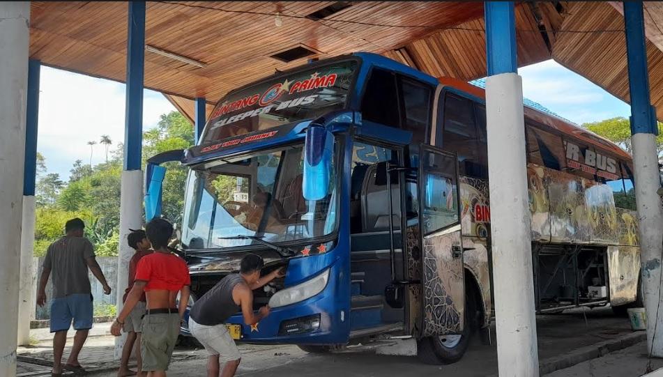 Bus Lintas Provinsi Dilempari OTK di Pambusuang Polman, Beruntung Penumpang Tak Luka