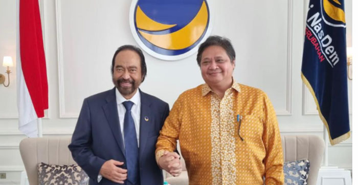 Airlangga mengaku kagum dengan kemewahan dan nuansa modern NasDem Tower. Ia pun memuji makanan dan suguhan lain yang dijamu Paloh.