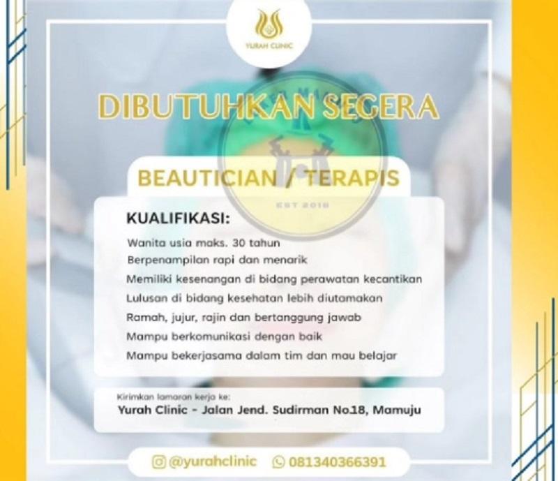 Lowongan Kerja - Yurah Clinic Buka Loker Posisi Terapis Kecantikan, Jangan Lewatkan!